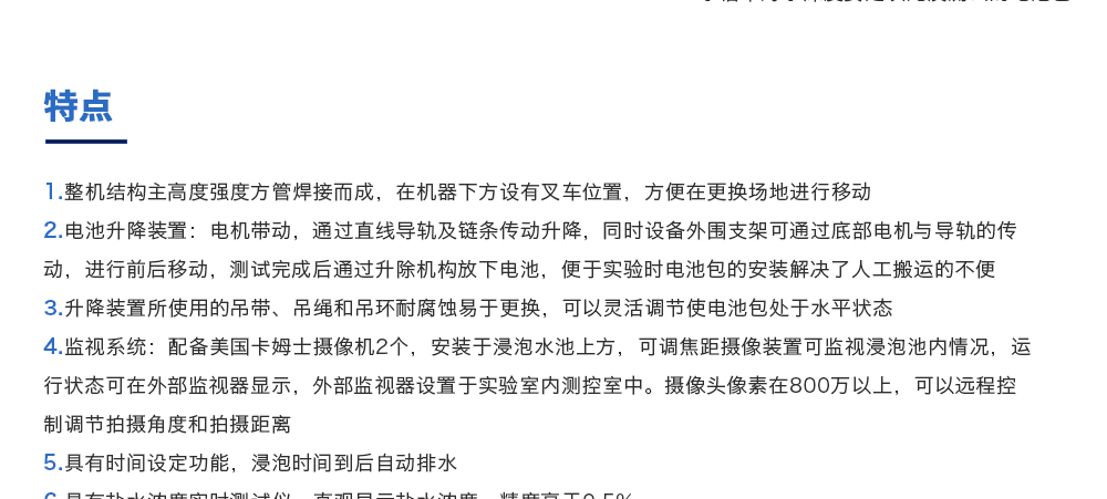 產(chǎn)品型號:JQ-6018 品牌:劍 喬 用途:海水浸泡試驗裝置主要用于電池以實車裝配狀態(tài)與整車線束相連然后以實車裝配方向在常溫下的海水成分中浸泡2h(海水為模擬海水成分,濃度為3.5%NaCl溶液)水槽中海水深度要足以淹咨詢熱線:13829135130