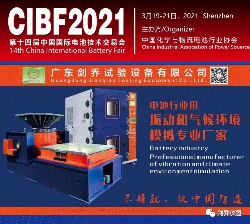 (CIBF2021)“第十四屆中國國際電池技術(shù)交流會/展覽會” 展覽面積99000平方米,展位數(shù)量達5000+個,預(yù)計參展商1300+家。CIBF2021展覽會將集中展示全球動力電池、儲能電池、3C電池、各種電池材料、制造設(shè)備、動力及儲能系統(tǒng)解決方案,不僅展示近兩年來我國在各種乘用車、新能源客車及物流車用動力電池領(lǐng)域和新能源儲能領(lǐng)域的一系列成果,也是各動力電池生產(chǎn)企業(yè)和整車制造企業(yè)了解動力電池最新測試、開發(fā)和驗證技術(shù)的理想場合,在此【劍喬儀器】誠摯邀請您蒞臨參觀指導!